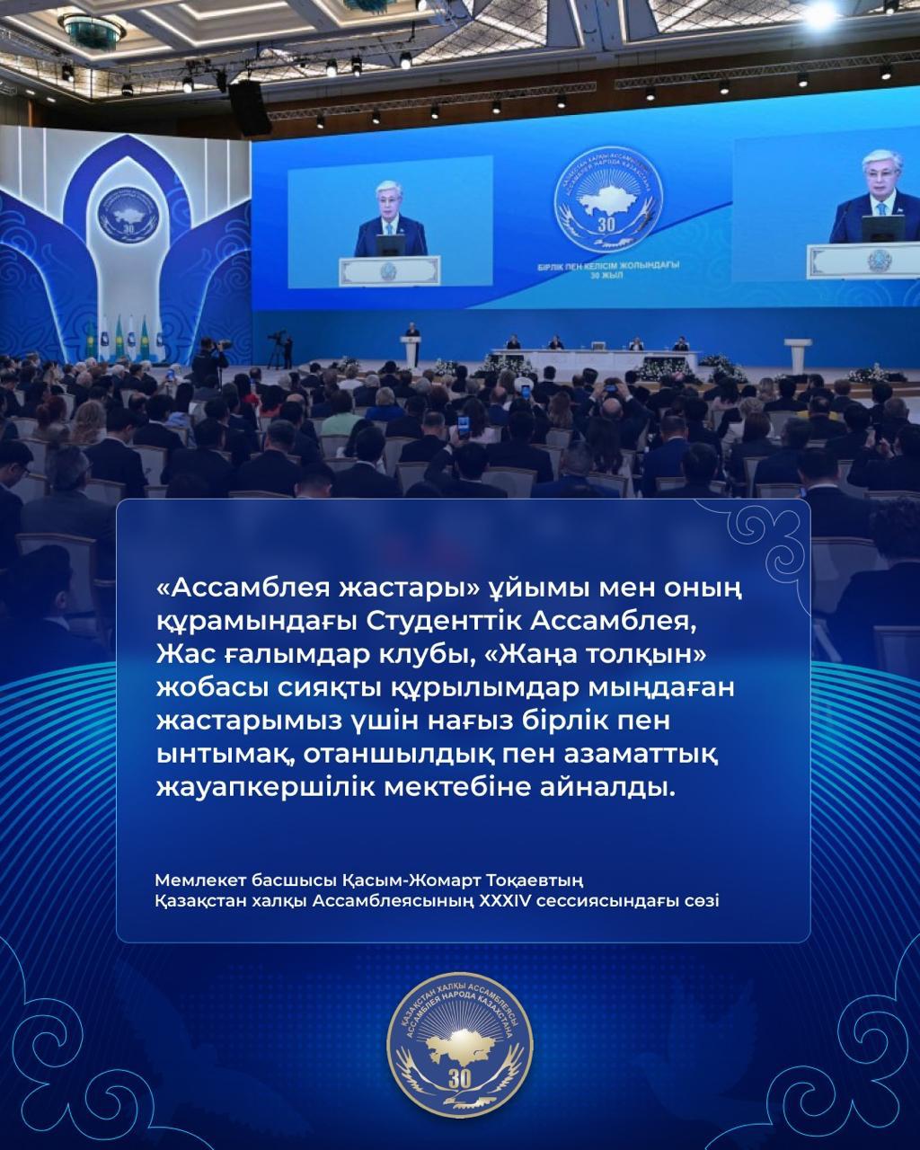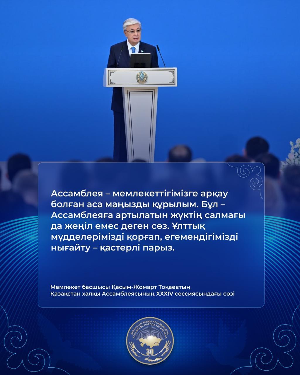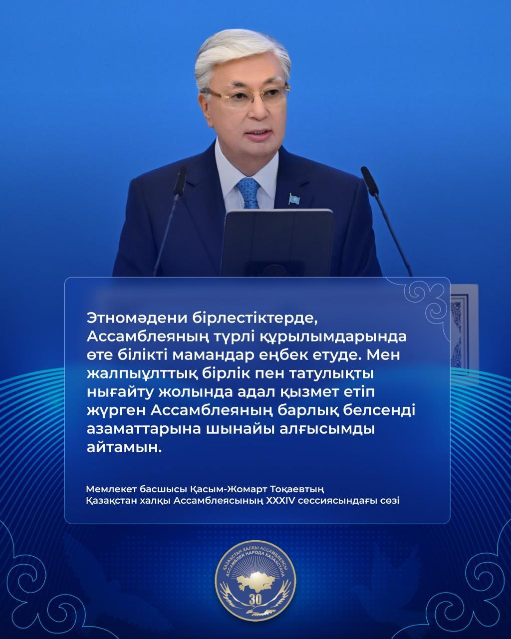 "Қазақстан халқы Ассамблеясының XXXIV cессиясындағы Мемлекеттік басшысы Қасым-Жомарт Тоқаевтің сөзі"