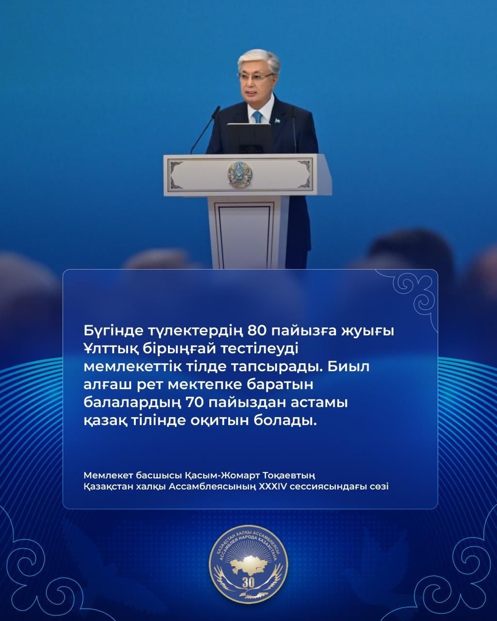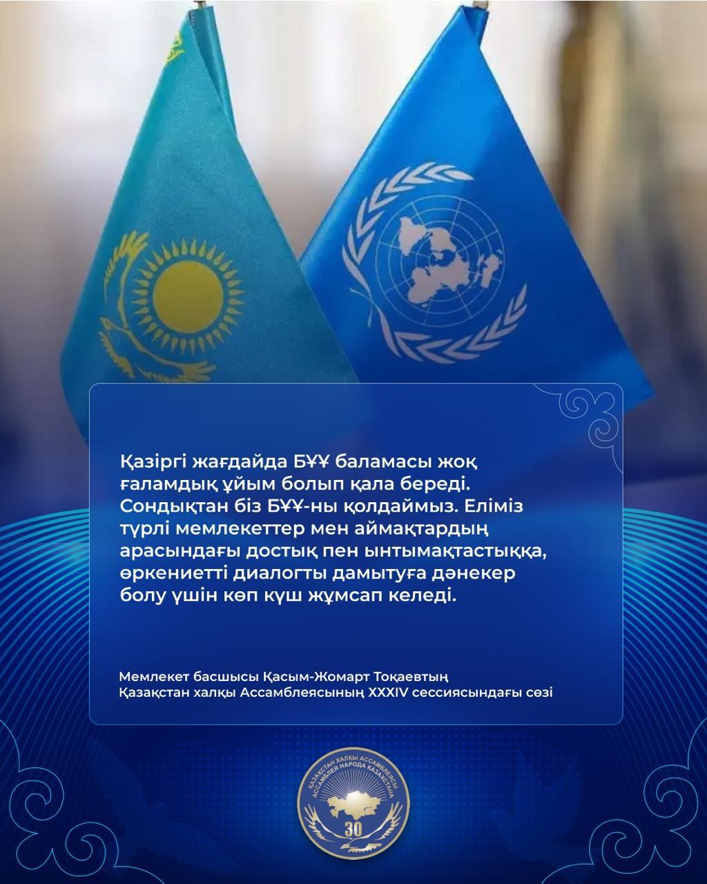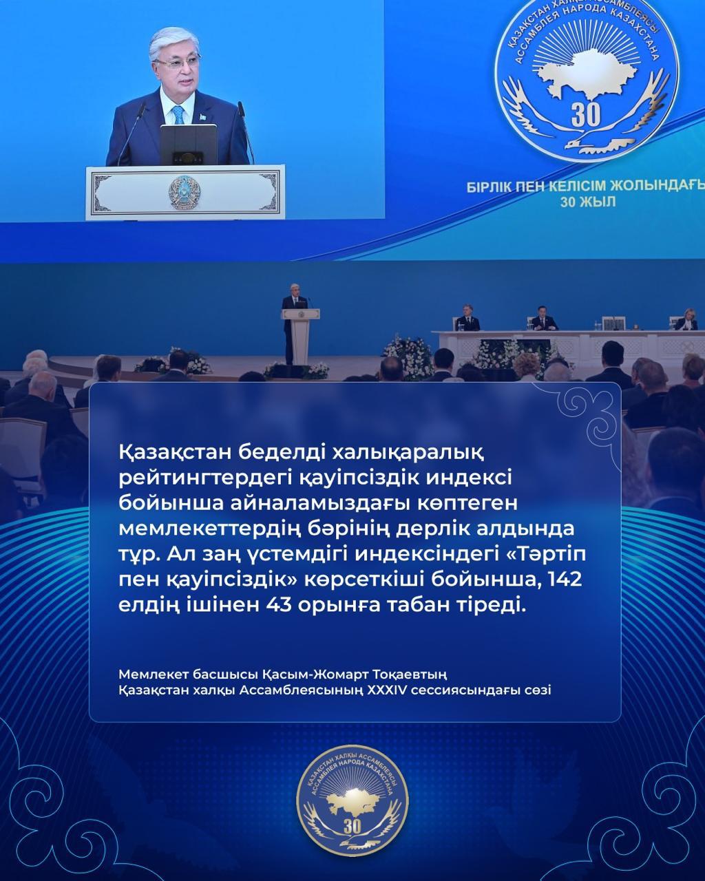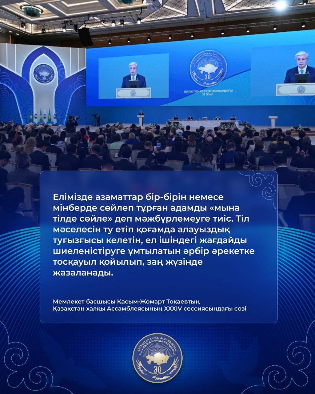 "Қазақстан халқы Ассамблеясының XXXIV cессиясындағы Мемлекеттік басшысы Қасым-Жомарт Тоқаевтің сөзі"