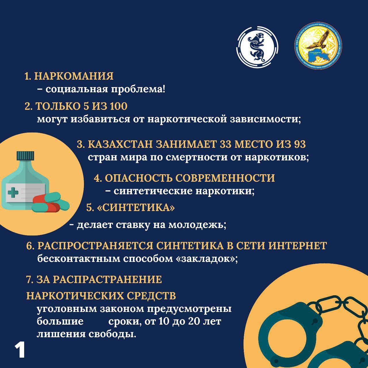 Есірткі, психотроптық препараттар мен прекурстардың алдын алу және зияны туралы.